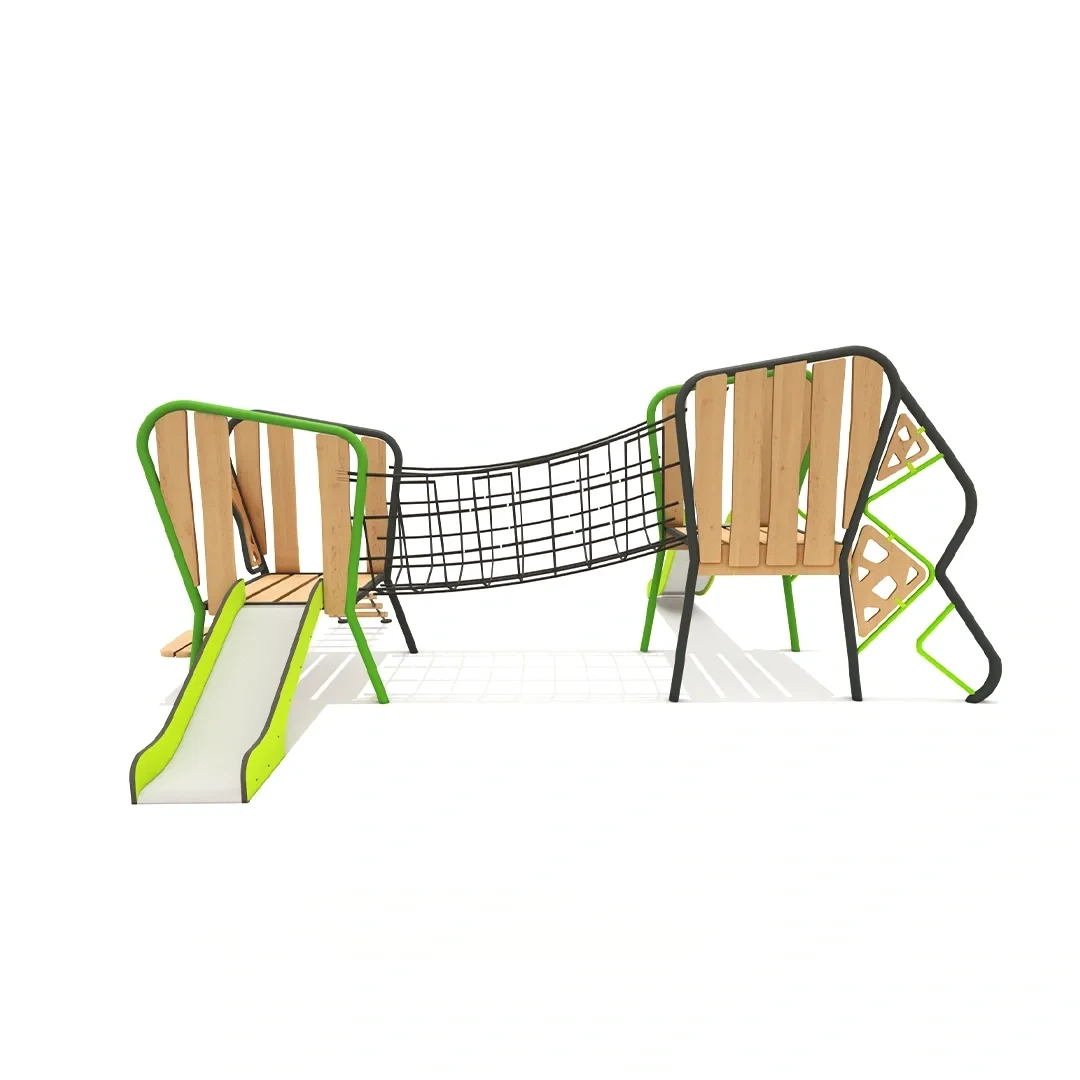 Standart formların dışına çıkan Cubenia çocuklar için eğlenceli ve macera dolu bir oyun deneyimi sağlar. Doğal ahşap dokusu ve renkli çizgileri ile çocuklara güvenli bir tırmanış, kayma ve keşif deneyimi sunarken, şehir parklarında doğanın estetiğiyle uyumlu ikonik oyun alanları yaratır.